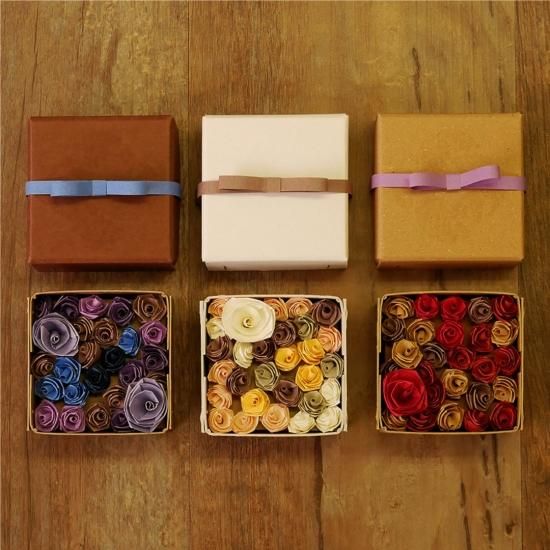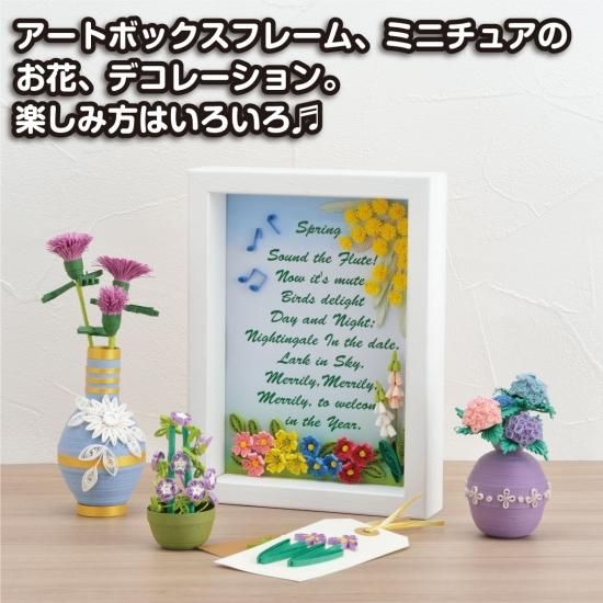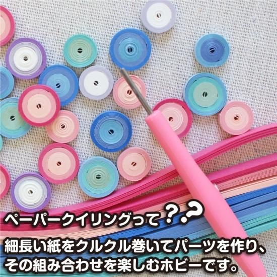 細長い紙をくるくる巻いてパーツを作り、その組み合わせで多様な作品が作れます。グリーティングカード等、アイデア次第でオリジナル作品が簡単に作れます