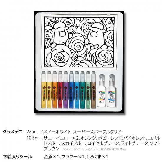 ヤマト公認グラスデコアーティスト・海野ちなみさんのオリジナル下絵シール3枚入り。見本通りに塗っても、お好きな色を塗っても、乾かすだけですぐに飾れる。
